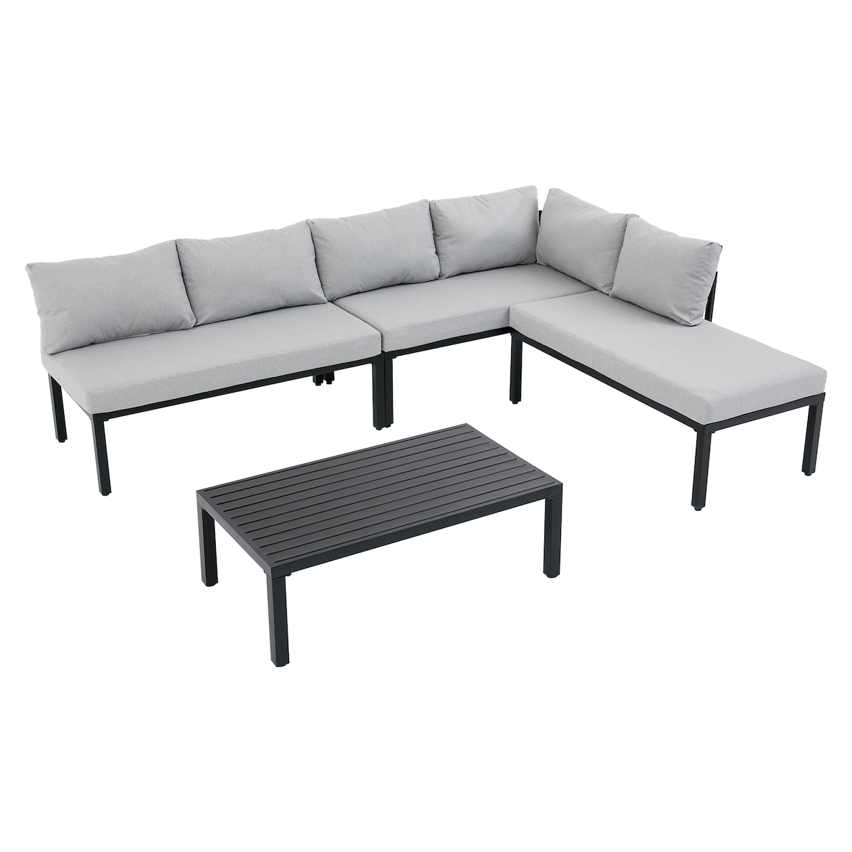Merax Outdoor Ecklounge Set für 6 Personen, Gartensofa & Tisch, verzinktes Eisen, inkl. Kissen, Grau