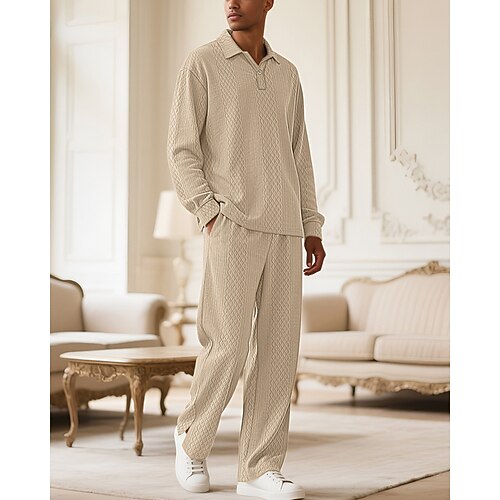 Per uomo Maglia da golf Polo da Golf Lavoro Casuale Bavero Manica Lunga Essenziale Moderno Semplice Jacquard 2 Pezzi Primavera Autunno Vestibilità regolare Nero Cachi Azzurro chiaro Grigio Maglia da