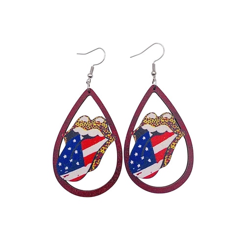 Orecchini a goccia in legno con bandiera USA per donne dell'anniversario dei 250 anni degli Stati Uniti gioielli pendenti patriottici leggeri disponibili in più stili boho casual per l'uso quotidiano