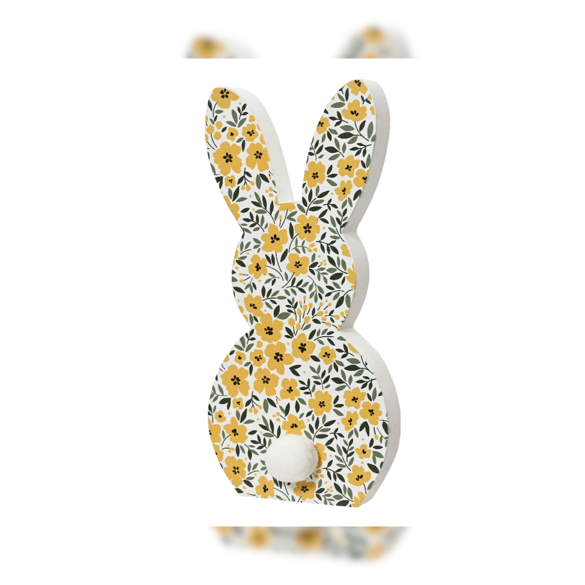 Decoris Dekofigur Osterhase 24cm Holz Blumenmuster Dekohase Holzfigur Osterdeko Tischdeko Ostern Frühlingsdeko Holzdeko Osterschmuck Hase Figur Weiß Grün Gelb
