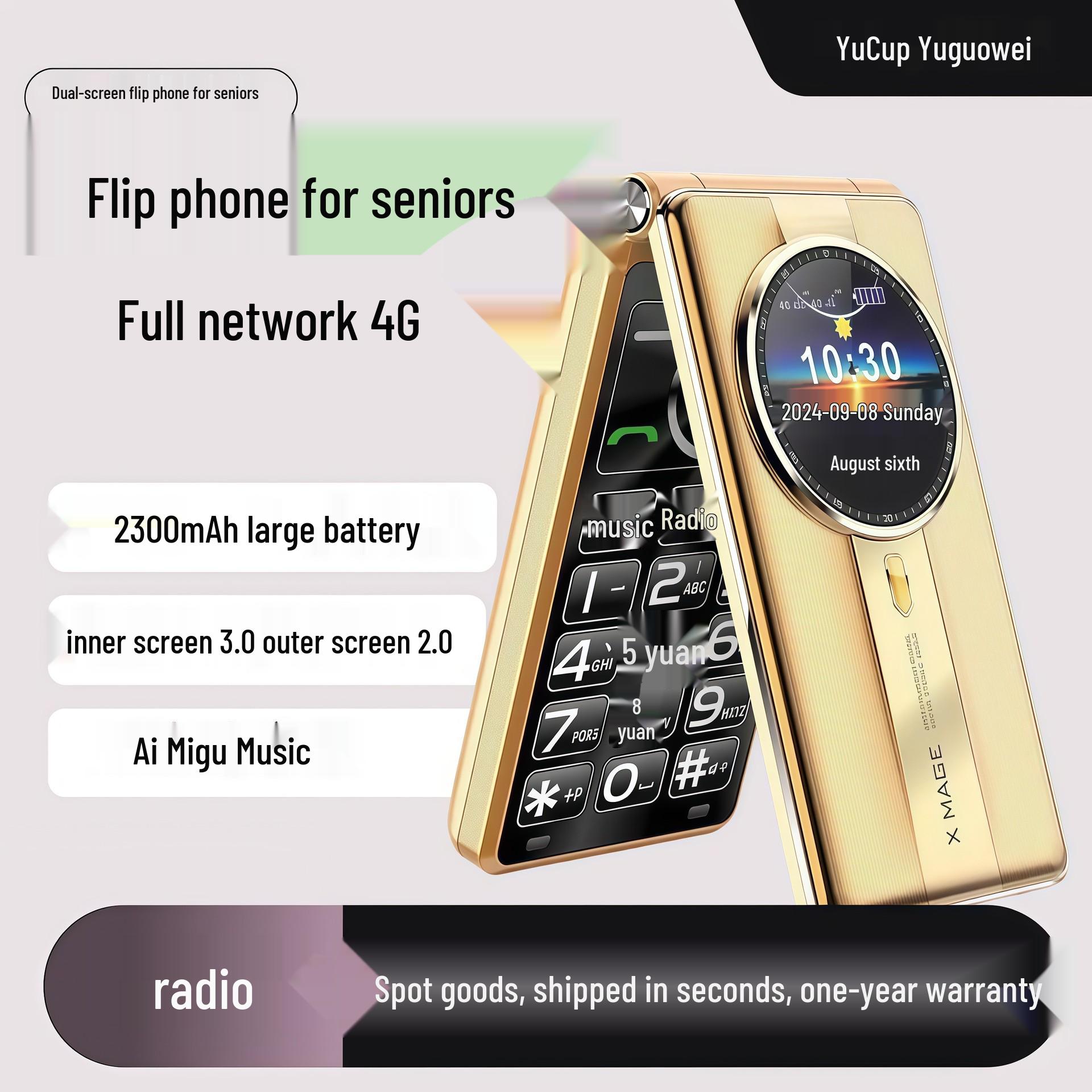 Extra Loud 4G Dual-Screen Flip Phone for Seniors with Large Characters & Screen, Ultra-Long Standby. black