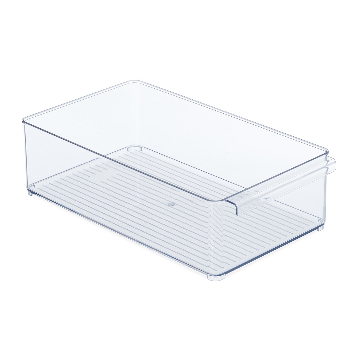 Relaxdays Kühlschrank Organizer, Aufbewahrung von Lebensmitteln, HBT: 10x20,5x36,5 cm, Küchenbox mit Griff, transparent