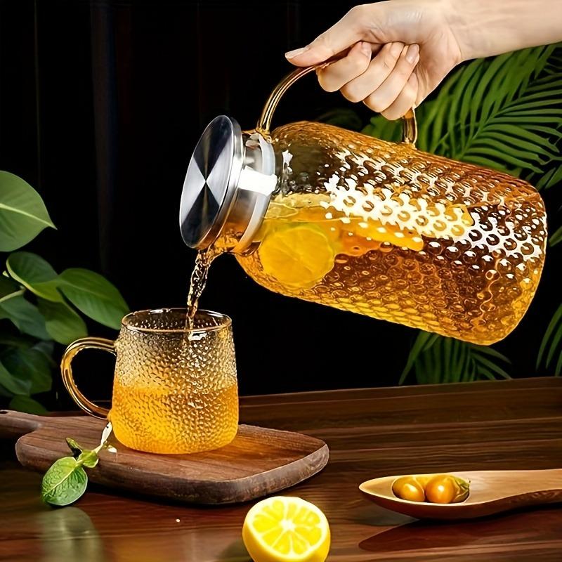 64oz/1.9L Glaskrug mit Deckel & Griff - Hochborosilikatglas für Kühlschrank, hält Getränke heiß/kalt, Saftkrug, Küche