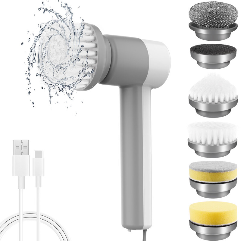 Handheld Electric Cleaning Brush – Efficient Smart Design, USB Charging, IPX7 Waterproof, 3 Brush Heads, Multi-Surface Cleaning Tool, Suitable for Kitchen, Bathroom, Floors, and Car Cleaning, White, JC301