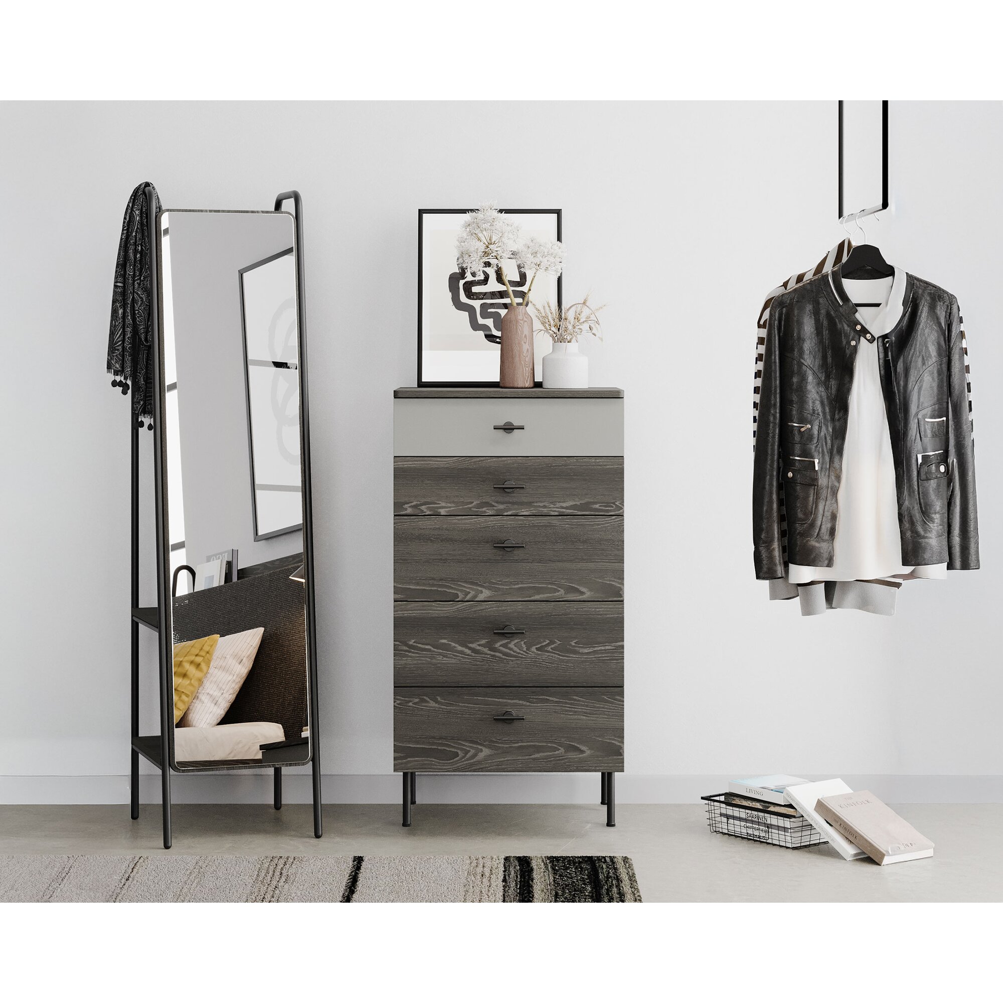 Kommode SALESFEVER "Visby Designer Kommode mit Stil", beige (natur, schwarz), B:120cm H:80cm T:40cm, Furnier, MDF, Metall, Sideboards, Kommode, Eiche Echtholzfurnier natur, schwarz B/H/T: 120cm x 80cm x 40cm,mit 6 Schubladen, 6 Stk., Eiche