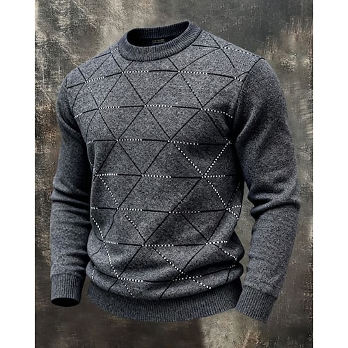 Per uomo Maglione Maglione a maglia A Coste Maglia Top Regolari Lavorato a maglia Geometrico Girocollo Moda Essenziale Vacanza Abbigliamento quotidiano Abbigliamento Autunno Inverno Blu Vinaccia L