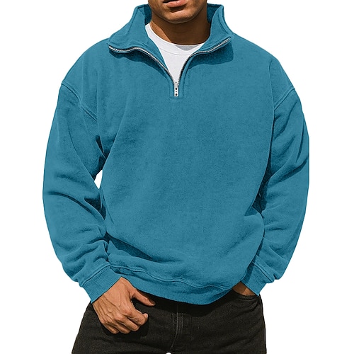 Per uomo Maglia Felpa con cappuccio Maglione Felpa con zip corta Blu Blu denim Giallo Rosa Blu marino Colletto Mao Semplice Con zip Casuale Quotidiano Sport Outdoor Streetwear Cool Abbigliamento