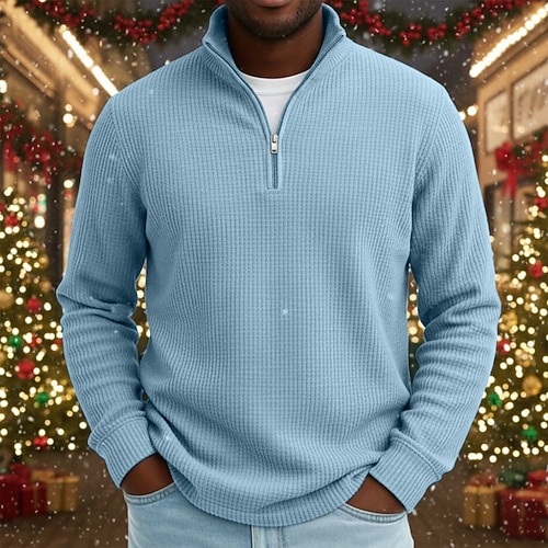 Per uomo Magliette Polo a Nido d'Ape Polo con zip Sport all'Aperto Casuale Colletto Mao Con cerniera Manica Lunga Moda Moderno Tinta unica Testurizzato Lavorato a maglia Primavera Autunno Tutte le