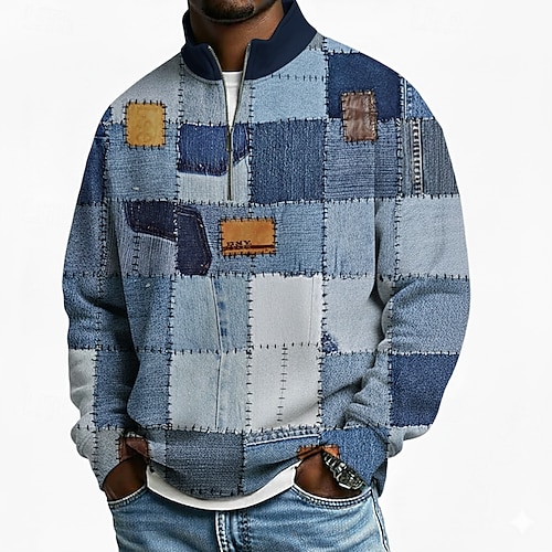 Per uomo Blocco di colori Geometrico Polo Manica Lunga Colletto Mao Athleisure Vacanza Athleisure Casual Quotidiano Patchwork Stampa 3D Primavera Autunno Inverno Blu