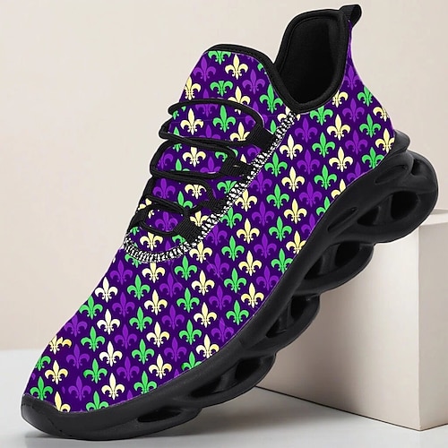 Sneaker da carnevale per uomo in viola con motivo Fleur-de-Lis – Design audace e colorato con tomaia in mesh traspirante ideale per Mardi Gras sfilate di carnevale e feste festive
