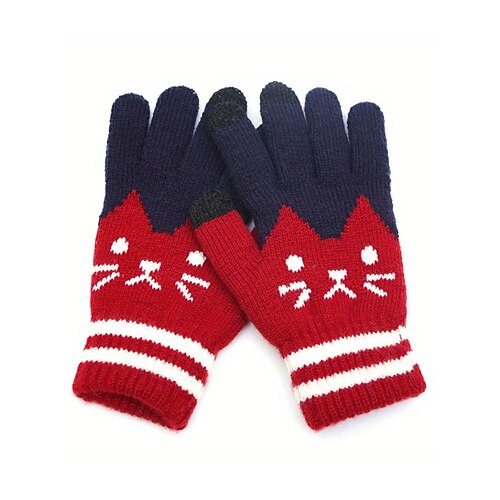 guanti da donna in maglia per touchscreen, multicolore, motivo gatto, comodo accessorio invernale