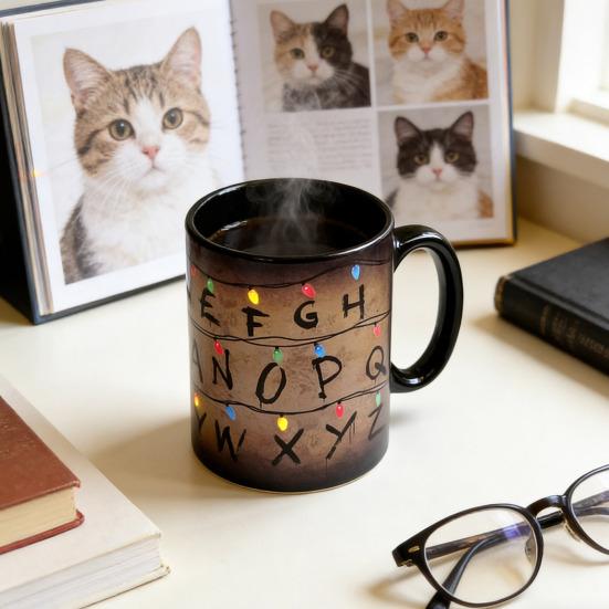 Retro Bunte Lichterkette Alphabet Kaffeetasse Farbwechselnde Keramiktasse Rustikal Wärmeempfindliche Tasse für Heiße Schokolade Tee Milch Heiße Geträn