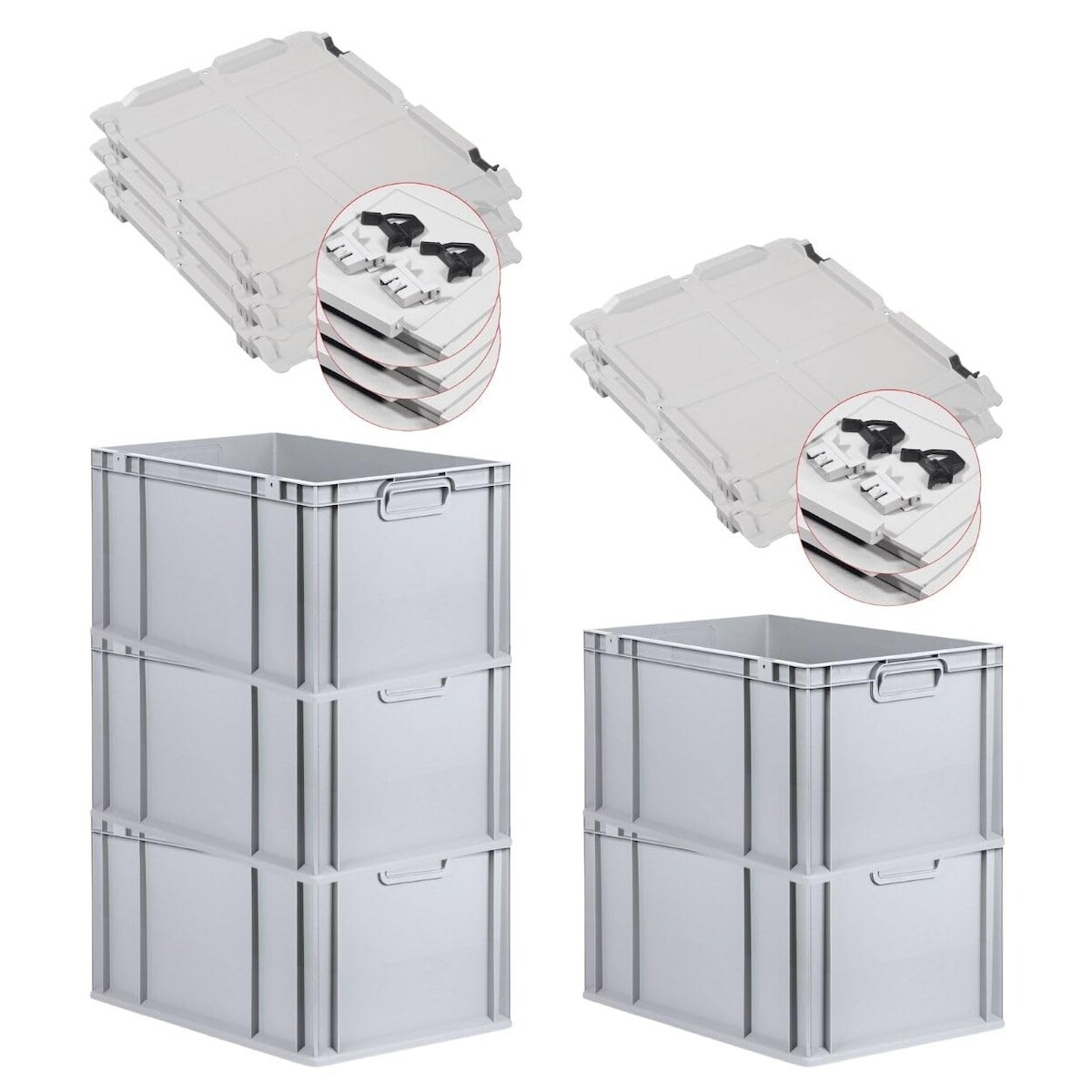 PROREGAL SuperSparSet 5x Eurobox NextGen Economy mit Scharnierdeckel & schwarzen Verschlüssen, Griffe zu, HxBxT 32x40x60cm, 65L, Eurobehälter, Box