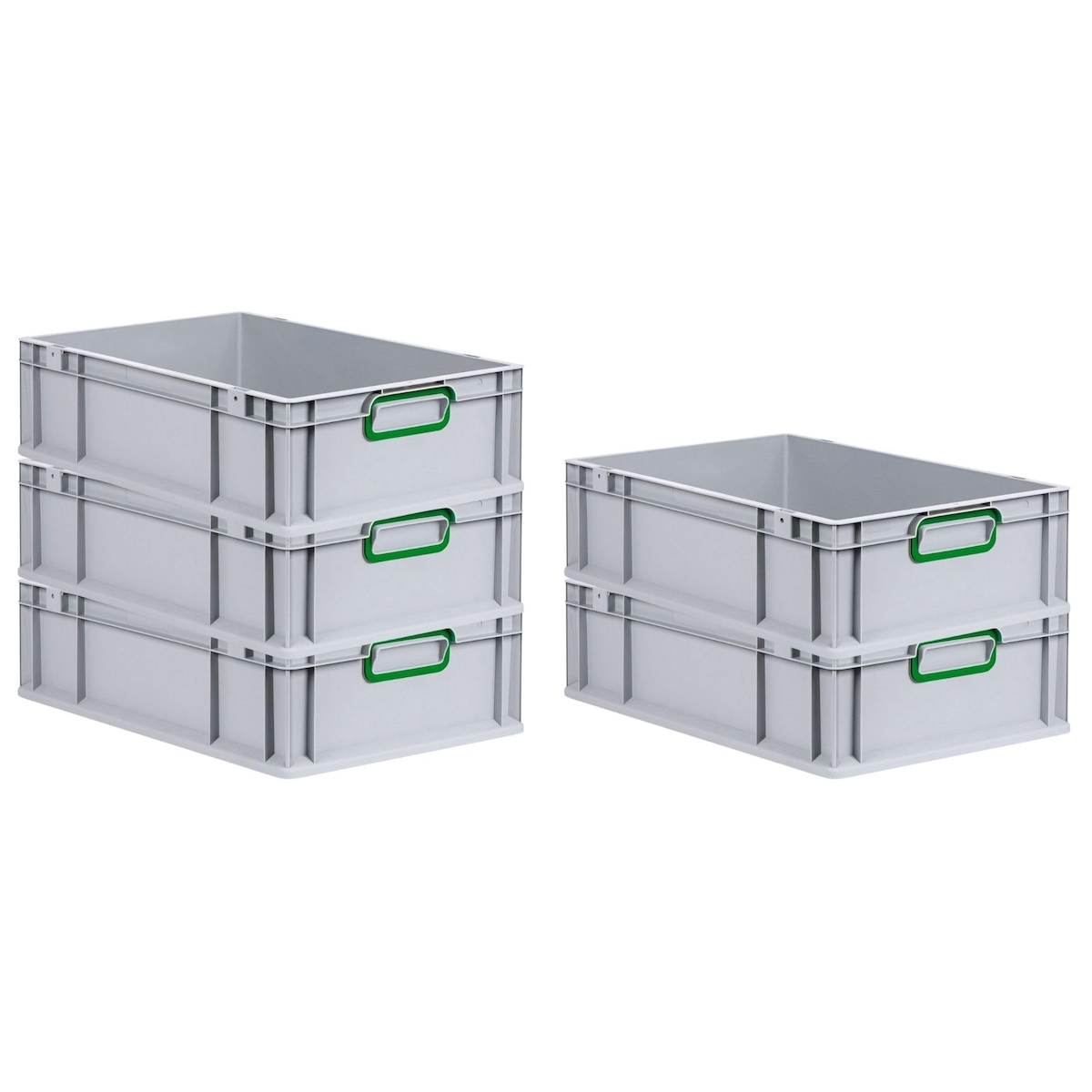 PROREGAL SuperSparSet 5x Eurobox NextGen Color, HxBxT 17x40x60cm, 34 Liter, Griffe grün zu, Grau, Eurobehälter, Box, Transportbehälter