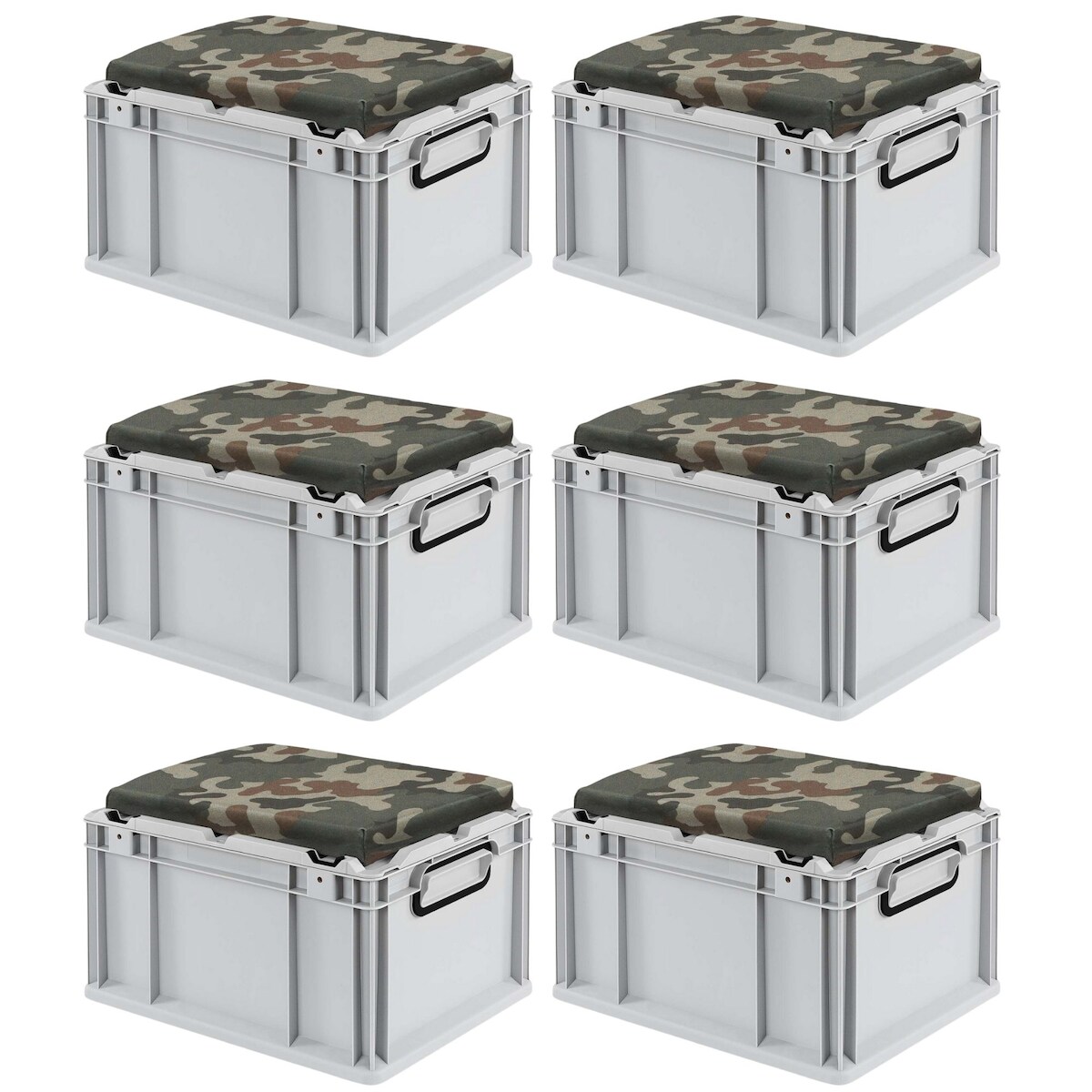 PROREGAL Mega Deal 6x Eurobox NextGen Seat Box Camouflage | HxBxT 26,5x30x40cm | 20 Liter | Griffe geschlossen | Eurobehälter, Sitzbox