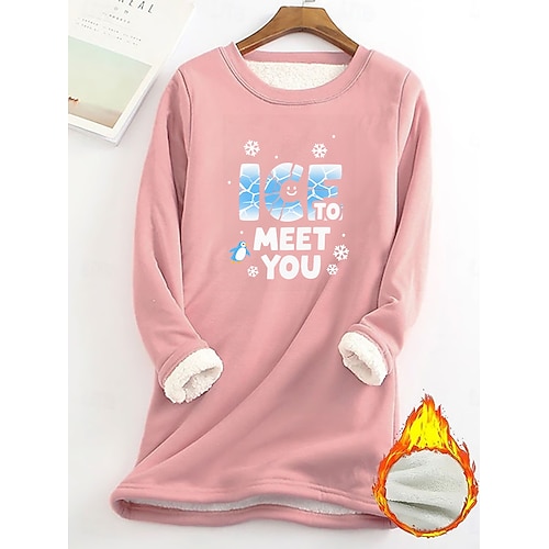 Felpa con fodera in pile da donna, pigiama, sì, ho freddo, grafica, lettera, calda, casual, soffice, manica lunga, girocollo, girocollo, maglie lunghe, casual, rosa chiaro, nero, rosa scuro, blu, primavera, autunno, inverno