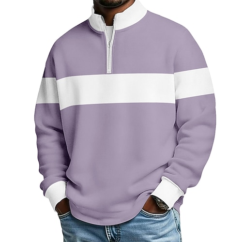 Per uomo Strisce orizzontali Polo con zip Manica Lunga Magliette polo Colletto alla coreana Casual Scuola Athleisure Ferie Abbigliamento quotidiano Stampa 3D Polo con cerniera a un quarto Primavera