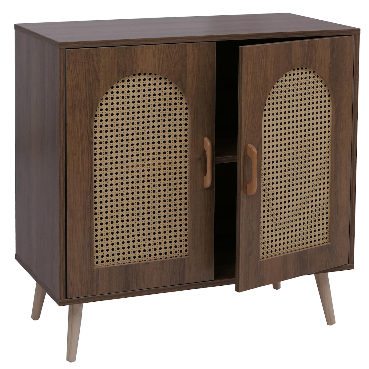 Mendler Kommode HWC-P51, Schrank mit Türen Anrichte Staufächer, Poly-Rattan MDF Melamin 79x80x40cm ~ braun