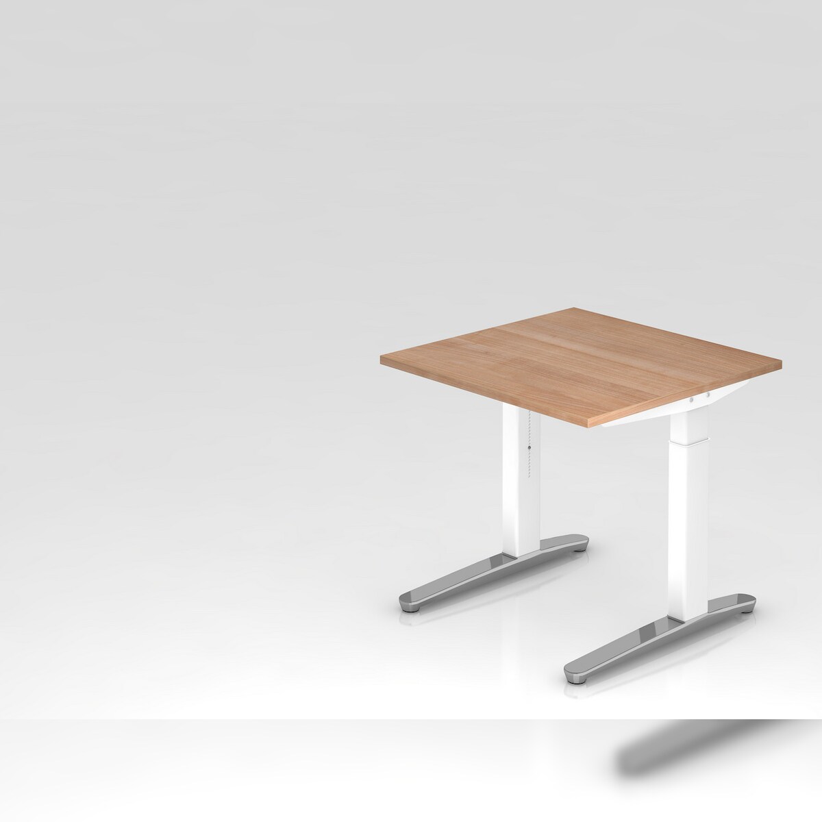 PROREGAL Schreibtisch Mika | Nussbaum | Weißes Gestell poliert | BxT 80x80cm | Arbeitshöhe 65-85cm | höhenjustierbar, 1cm Raster | C-Fuß-Gestell