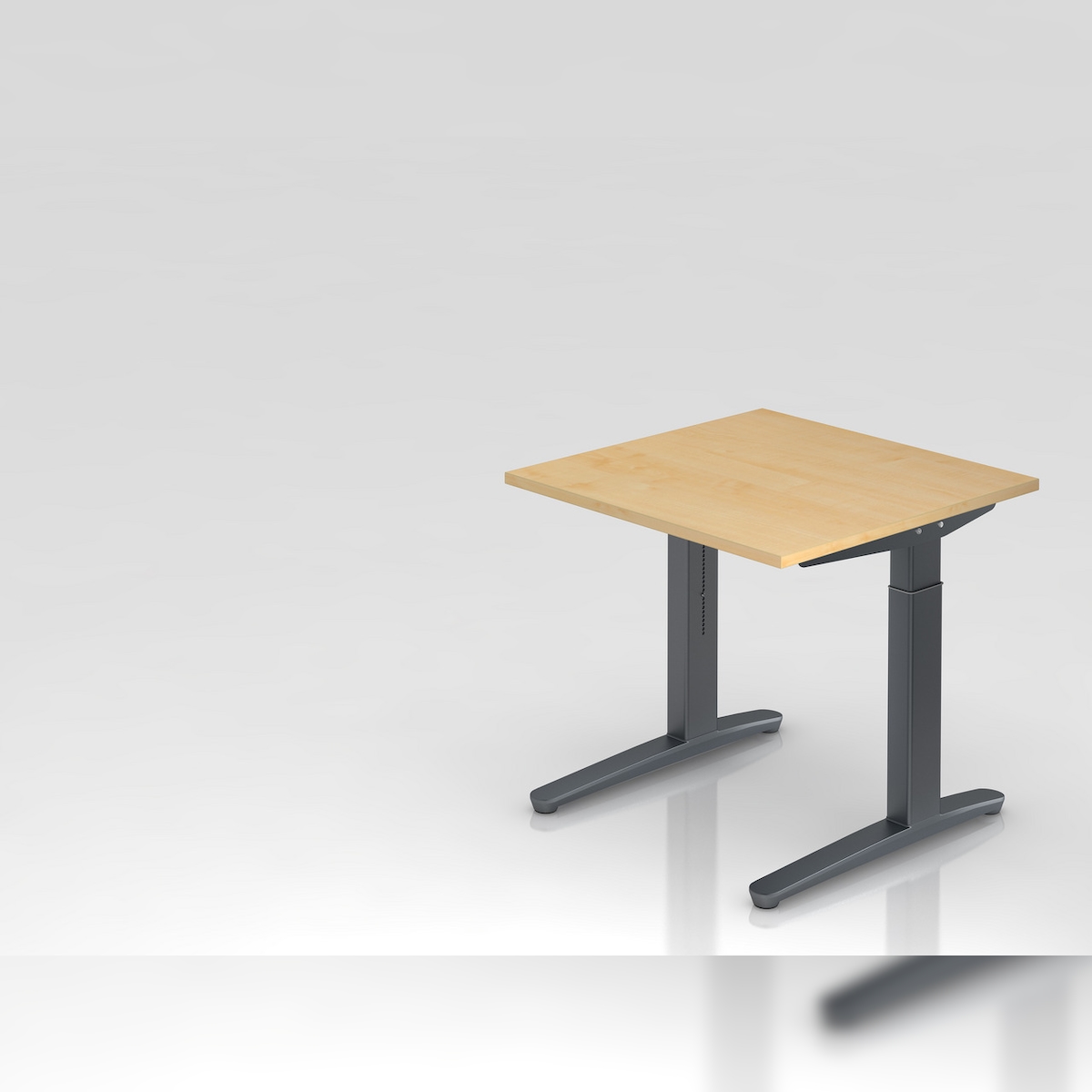 PROREGAL Schreibtisch Mika | Ahorn | Graues Gestell | BxT 80x80cm | Arbeitshöhe 65-85cm | höhenjustierbar, 1cm Raster | C-Fuß-Gestell | Bürotisch