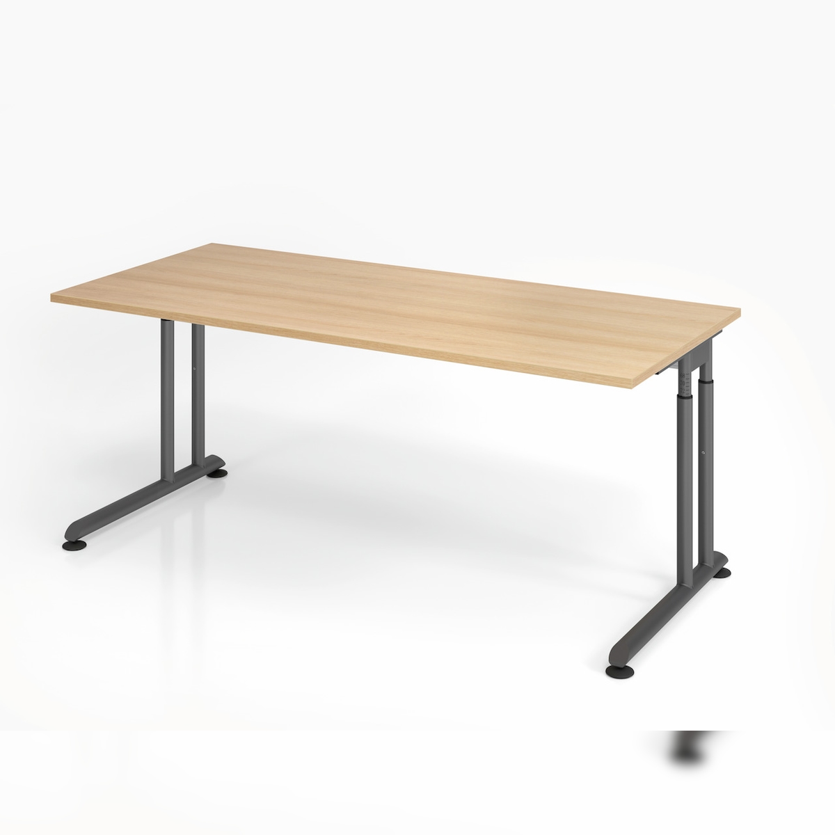 PROREGAL Schreibtisch Mika | Eiche | Silber Gestell | BxT 180x80cm | Arbeitshöhe 65-85cm | höhenjustierbar, 1cm Raster | C-Fuß-Gestell | Bürotisch