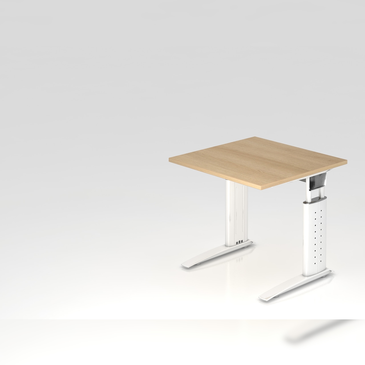 PROREGAL Schreibtisch Mauri | Eiche | Weißes Gestell | BxT 80x80cm | Arbeitshöhe 68-86cm | höhenjustierbar, 2cm Raster | C-Fuß-Gestell | Bürotisch