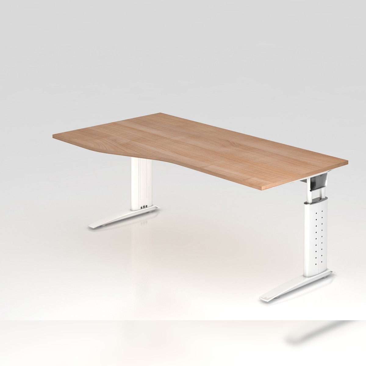 PROREGAL Schreibtisch Mika | Nussbaum | Weißes Gestell poliert | BxT 200x100cm | Arbeitshöhe 65-85cm | höhenjustierbar, 1cm Raster | C-Fuß-Gestell