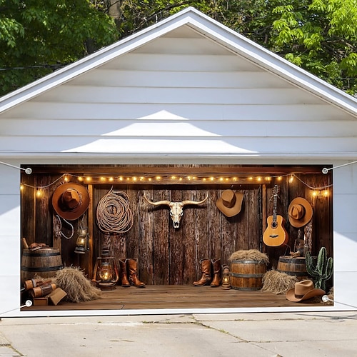 Copertura per porta del garage Grande appeso Cowboy Fienile Western Rustico Da serata All'aperto Sfondi di ripresa Porta d'ingresso Decorazioni Parete Porta Sfondo