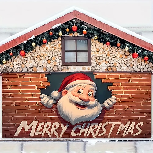 Natale arazzo Copertura per porta del garage Grande appeso Babbo Natale buon Natale Carino 3D Da serata All'aperto Vacanze Sfondi di ripresa Yarda Arredamento per la casa