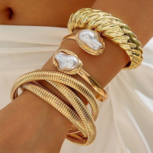 Accessori Samba del Carnevale di Rio Braccialetti a Strati in Tonalità Oro per Donna - Set di Bangles Impilabili con Design Attorcigliato Bracciale a Catena a Serpente e Accenti di Perle Barocche