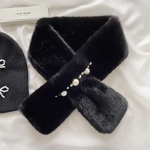 sciarpa natalizia in pelliccia sintetica da donna, morbido scaldacollo con nodo incrociato in peluche, elegante scialle invernale per feste e regali