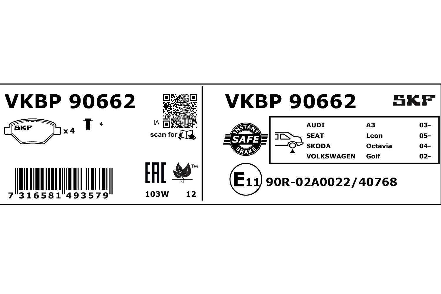 SKF Bremsbelagsatz, Scheibenbremse VKBP 90662 hinten rechts links für SKODA VW SEAT JZW698451M