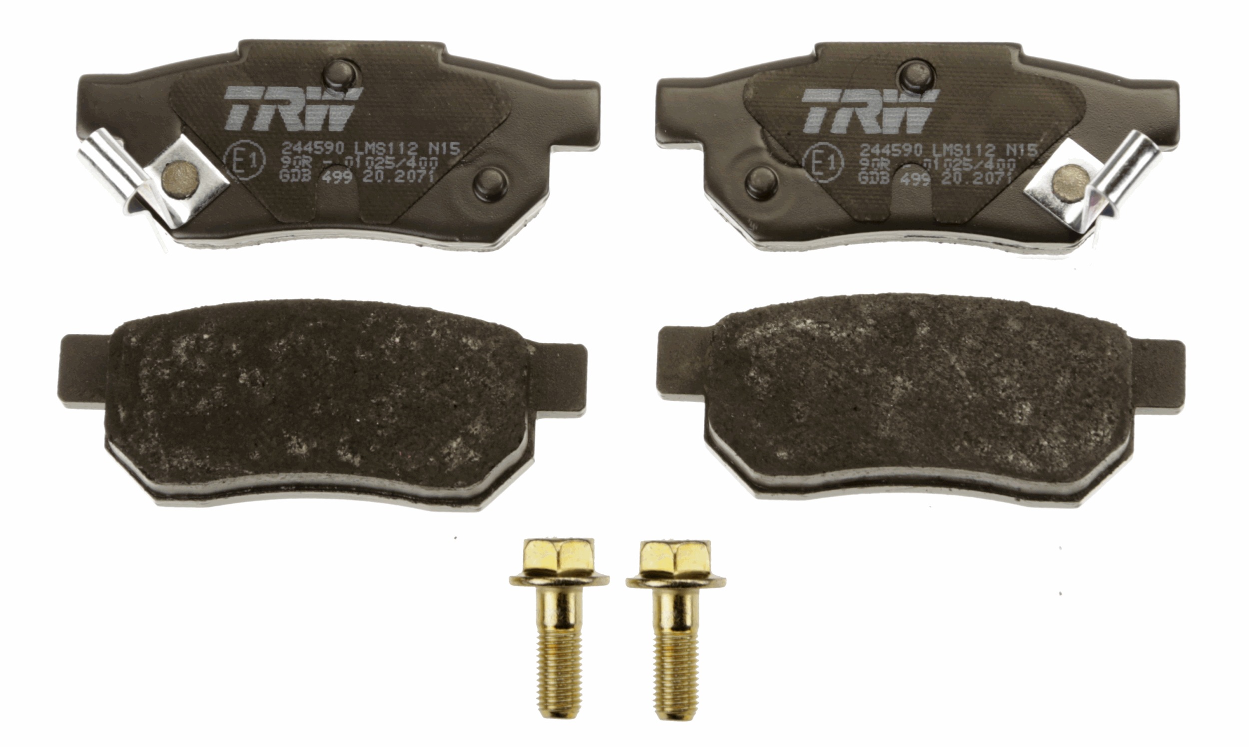 TRW Bremsbelagsatz, Scheibenbremse GDB499 hinten rechts links mit Zubehör für MG LOTUS ROVER HONDA 43022-SR3-505 43022-SF1-010 06430-SAA-J50