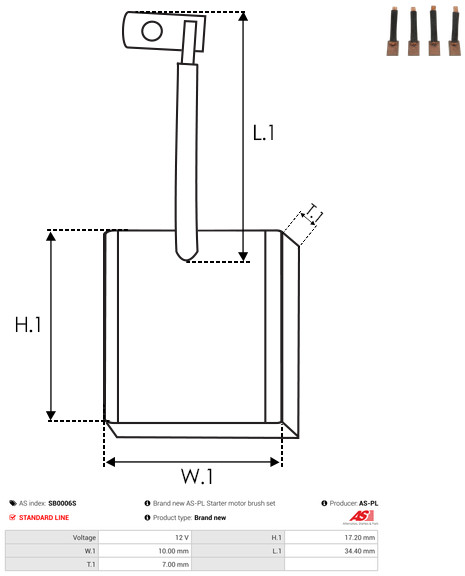 AS-PL Kohlebürste, Starter Universal 12V für VW MERCEDES-BENZ FORD OPEL 8983119 311911215 6S6T14K011KF SB0006S