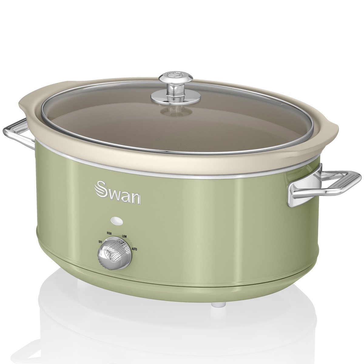 SWAN SF17031GNEU Retro Slow Cooker 6,5L, Antihaft-Keramisches PFOA- und PTFE-freies, Vintage, Grün, 320W