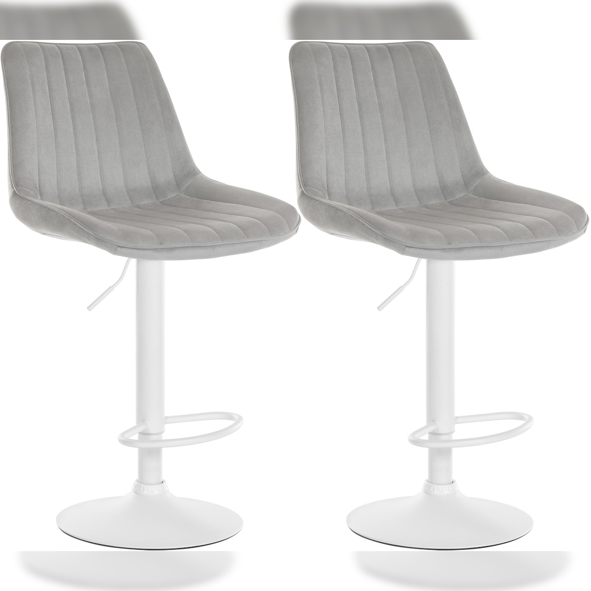 CLP 2er Set Barhocker Toni Samt grau/Metall matt weiss
