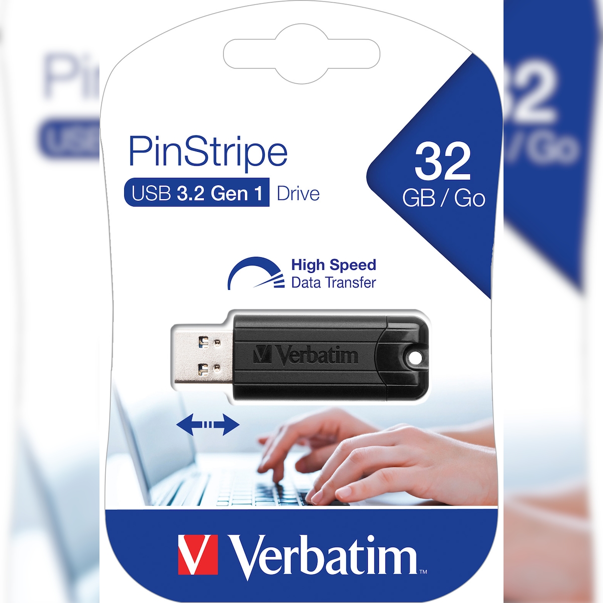 Verbatim USB 3.2 Stick 32GB, PinStripe, schwarz Typ-A, (R) 30MB/s, (W) 10MB/s, Retail-Blister