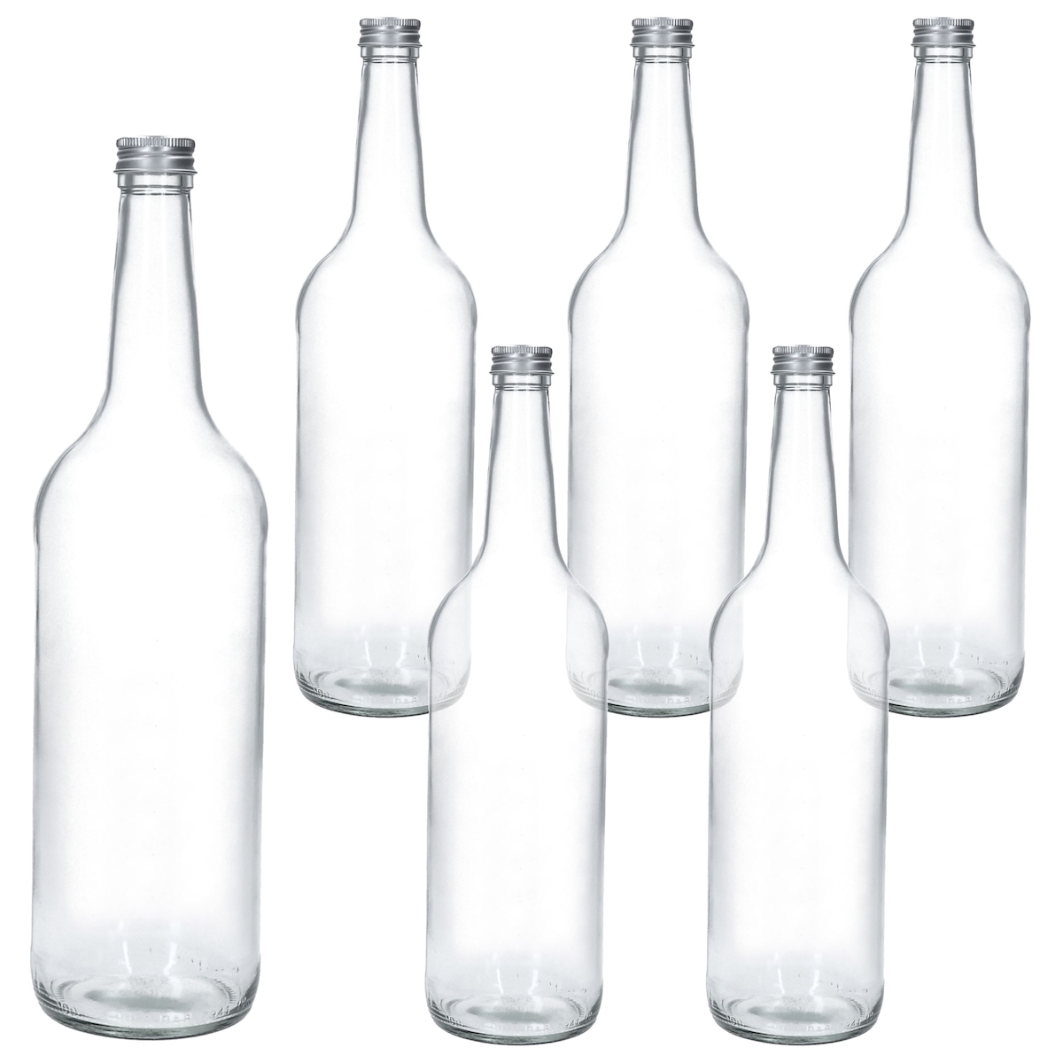 6x Geradhalsflasche 1L + Schraubverschluss Silber 1000ml Glasflasche Saft Wasser