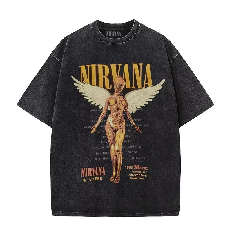 2026 Nirvana Rock Band Unisex Retro Cotton Washed Tee in Utero Album Men Women's Oversized Y2K Distress Tshirt Casual Loose Streetwear cm tan