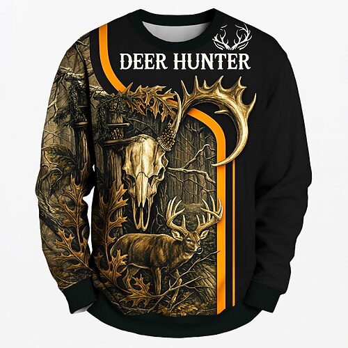Per uomo Cervo Felpa 3D Da caccia Girocollo All'aperto Sport all'Aperto Verde militare Girocollo Stampa 3D Inverno Primavera Autunno progettista