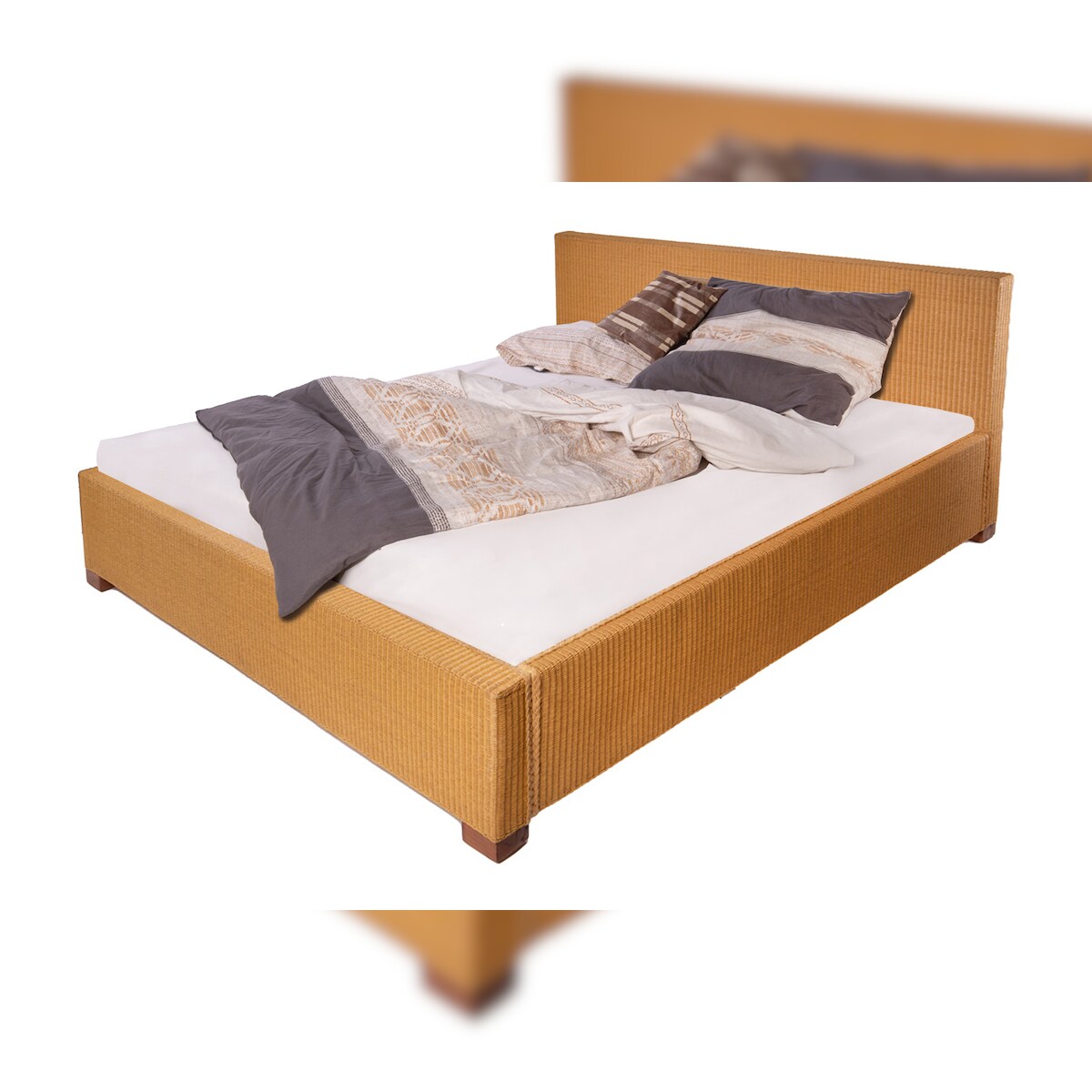 Loombett Korbbett Doppelbett Honigfarben aus Loom-Geflecht 180 x 200 cm TUNIS