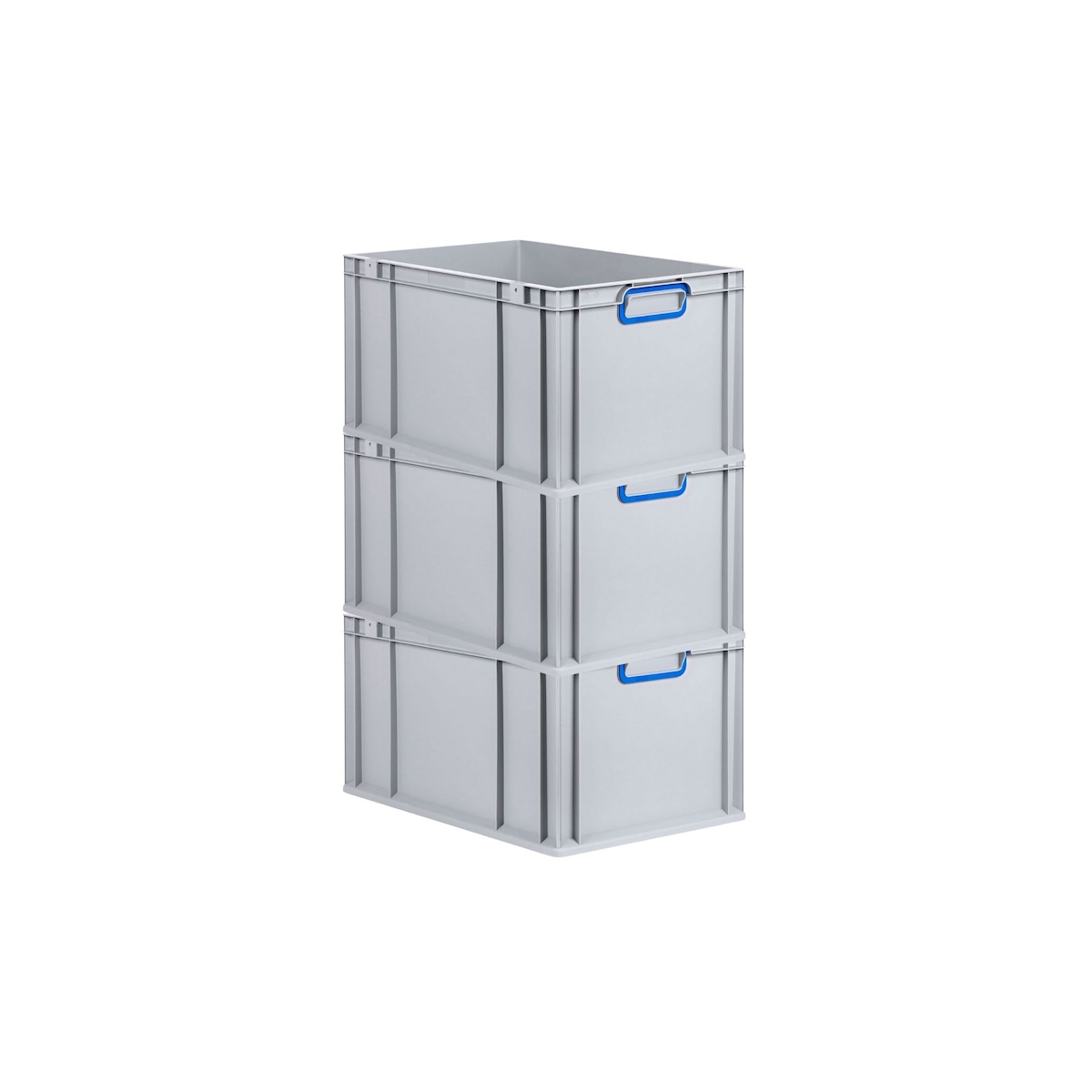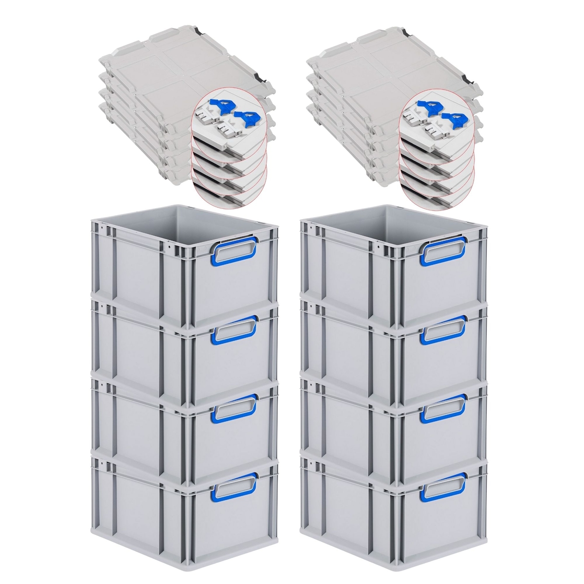 PROREGAL 8x Eurobox NextGen Color mit Scharnierdeckel & Verschlüssen | HxBxT 22x30x40cm | 20 Liter | Griffe blau geschlossen | Glatter Boden