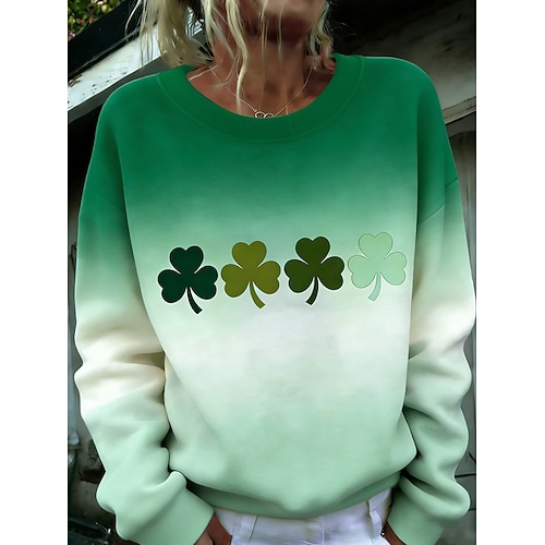 Felpa da donna per il giorno di San Patrizio con grafica trifoglio casual a maniche lunghe colletto regolare top casual per l'uso quotidiano verde scuro arancione verde estate primavera