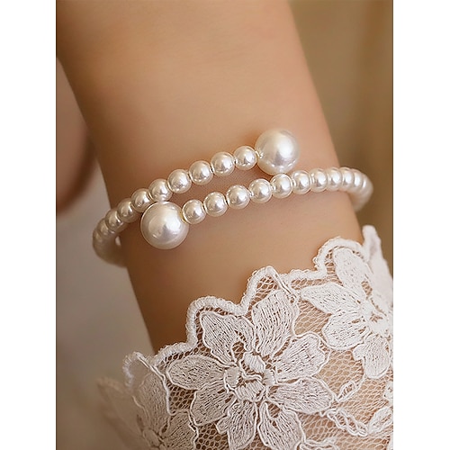 Bracciale da donna in finte perle, elegante design bicolore, perfetto per matrimoni, San Valentino e per l'uso quotidiano