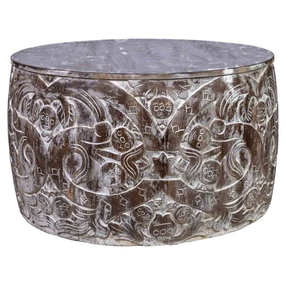 Tavolo rotondo da centro in legno intagliato, 76x76x45, marrone