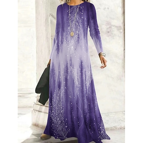 Per donna Abito Lungo Maxi Abito Vestito Casual Vestito a ruota Abito Boho Elegante Vintage Quotidiano All'aperto Weekend Vestibilità regolare Ombre Floreale Manica Lunga Girocollo Blu Viola Verde