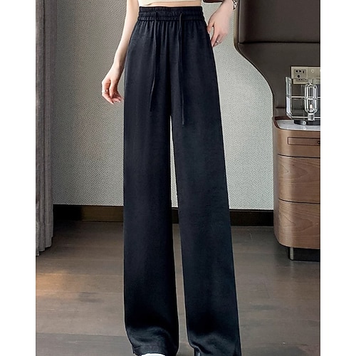 Per donna Gamba larga Chinos Dritto Vacanza Vintage Streetwear Lunghezza alla caviglia Vita media Semplice Elastico in vita Fibbia Confortevole Inelastico Micro-elastico All'aperto Streetwear