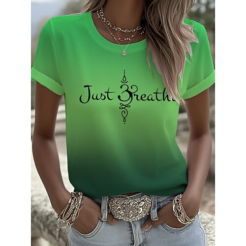 Per donna Maglietta Ombre Grafico Lettera Vintage Elegante Classico Manica Corta Girocollo Top Regolari Quotidiano Weekend Stampato Blu Blu turchese Viola Verde Estate Primavera