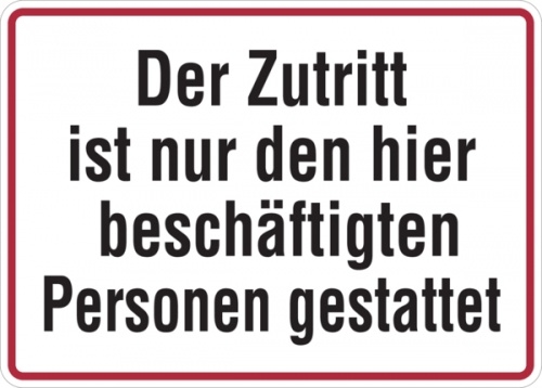 Hinweisschild, Zutritt nur beschäftigte Personen, 250 x 350 mm - 350x250x0.45 mm Aluminium geprägt