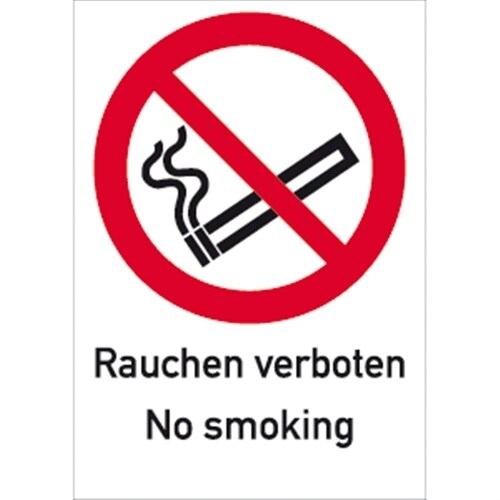 Aufkleber Rauchen verboten No smoking ISO 7010, Kombischild, Folie, 210x297 mm